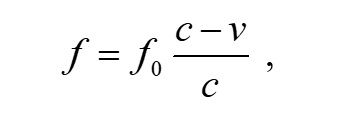 в которой изменение частоты определяется отношением скоростей света относительно приёмника (с – v) и источника (с), а сам (классический) эффект Доплера зависит от скорости света относительно конкретного приёмника или наблюдателя, а не источника света [2]. В классическом эффекте Доплера излучаемые источником фотоны с одинаковой частотой f0 будут восприниматься разными приёмниками с разными частотами f, соответствующими относительным скоростям v источника и каждого из приёмников. То есть эффект Доплера формируется при приёме фотонов, а не при их излучении, и не требует магического воздействия наблюдателей на происходящий в источнике процесс излучения фотонов.